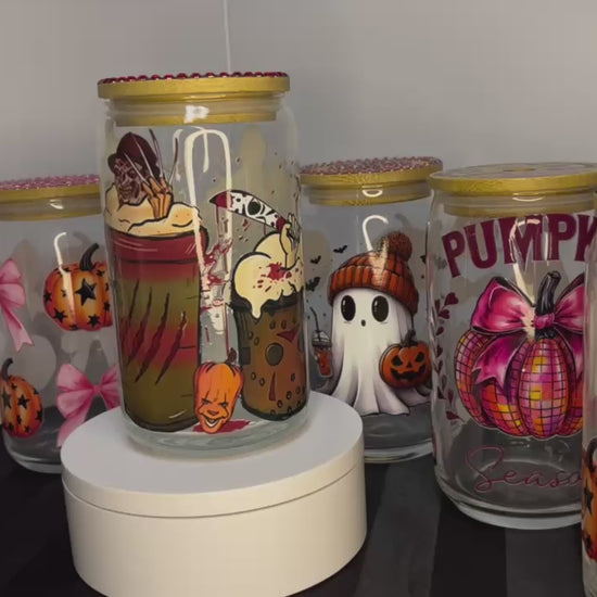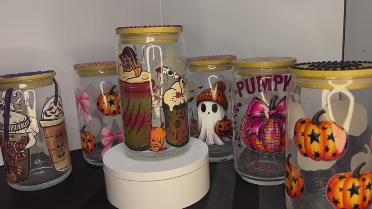 16 Oz Glass Beer with Rhinestone Bamboo Lid and Glass Straw and cleaner.