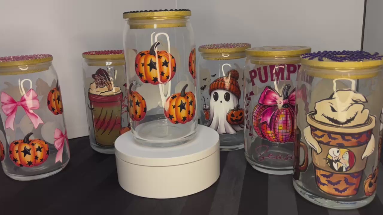 Glass Beer Can 16 oz - Pumpkins $15.00